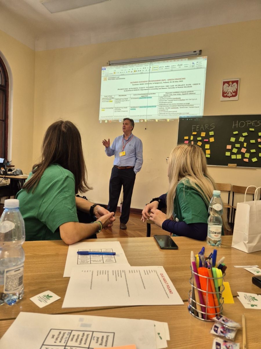 Το πρόγραμμα με θεματική Green Finance διεξήχθη καταρχήν με διαλέξεις διαδικτυακά τον Απρίλιο και Μάιο και στη συνέχεια το Μάιο δια ζώσης στο πανεπιστήμιο της Πολωνίας Kazimierz Wielki University, Department of Law and Economics.